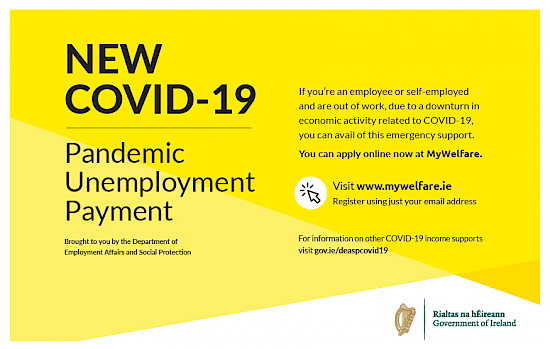 Please see below (with Dept. Social Welfare information link) the main points of the COVID-19 Pandemic Unemployment Payment announced yesterday.