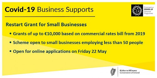 The Government has agreed details of the new €250m Restart Grant, which will give direct grant aid to micro and small businesses to help them with the costs associated with reopening and reemploying workers following COVID-19 closures.